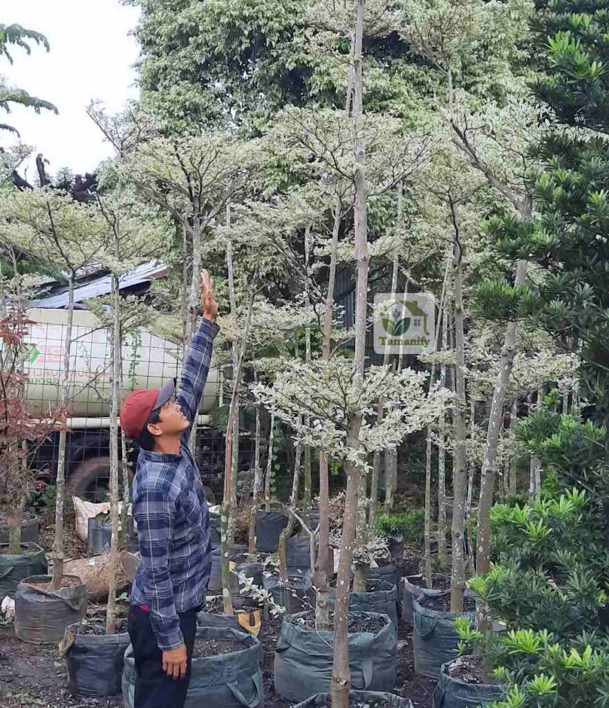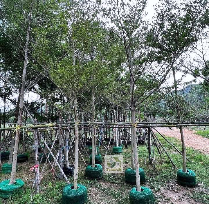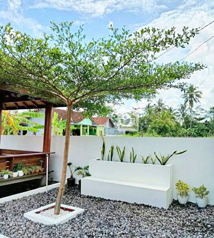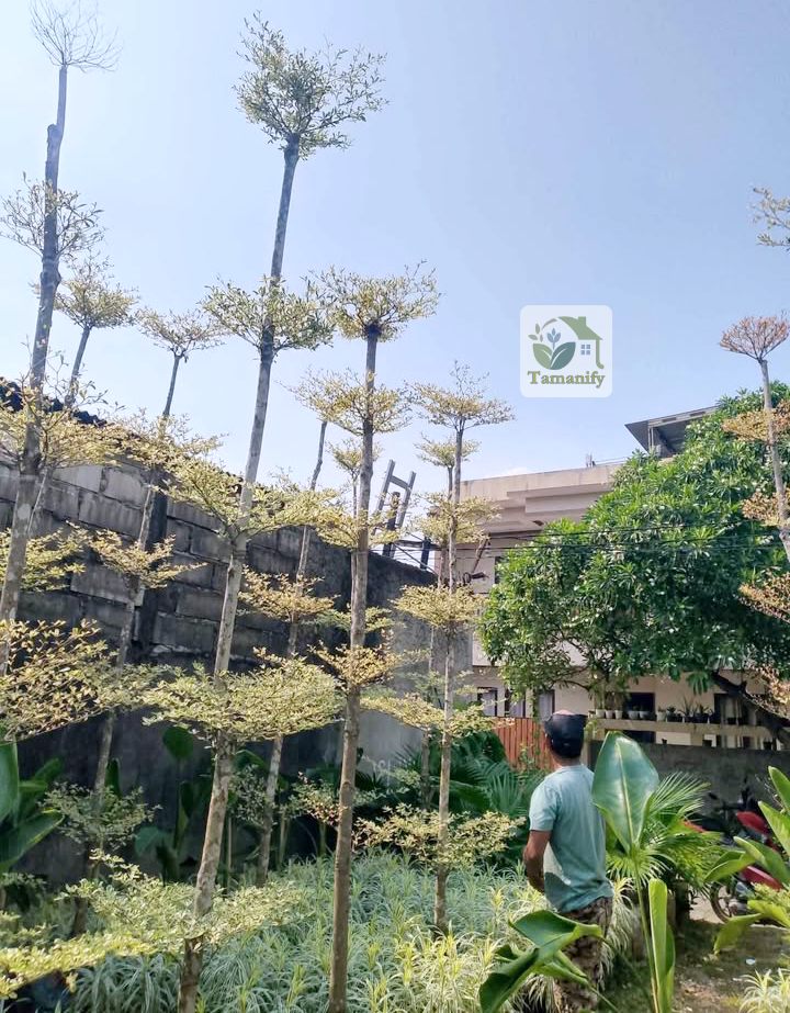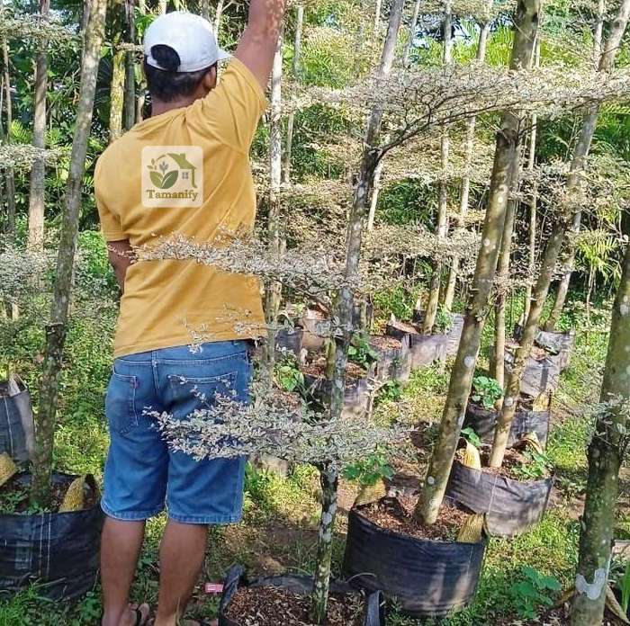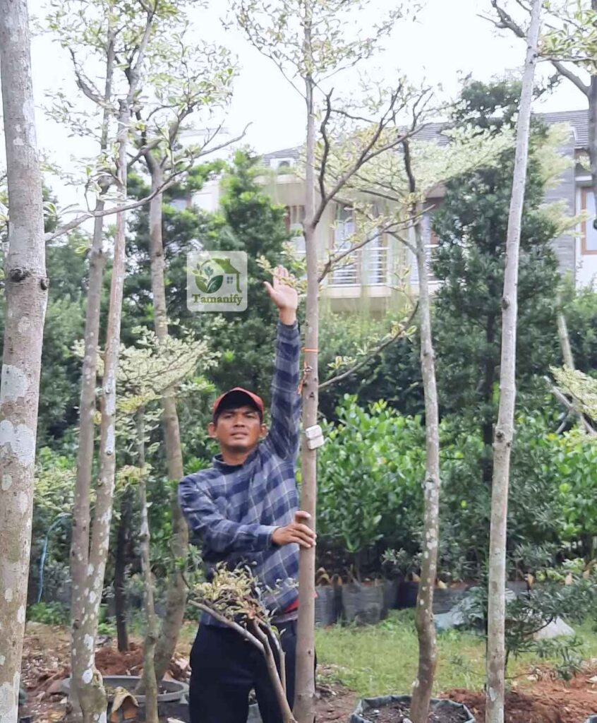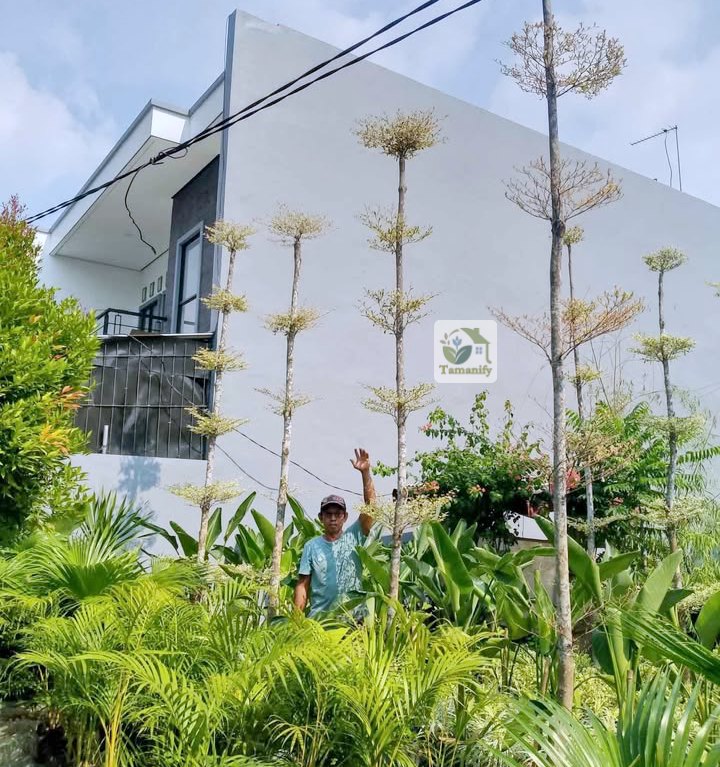 Ukuran ideal tergantung pada luas lahan. Untuk taman rumah minimalis, biasanya digunakan pohon dengan tinggi 1,5–2 meter.