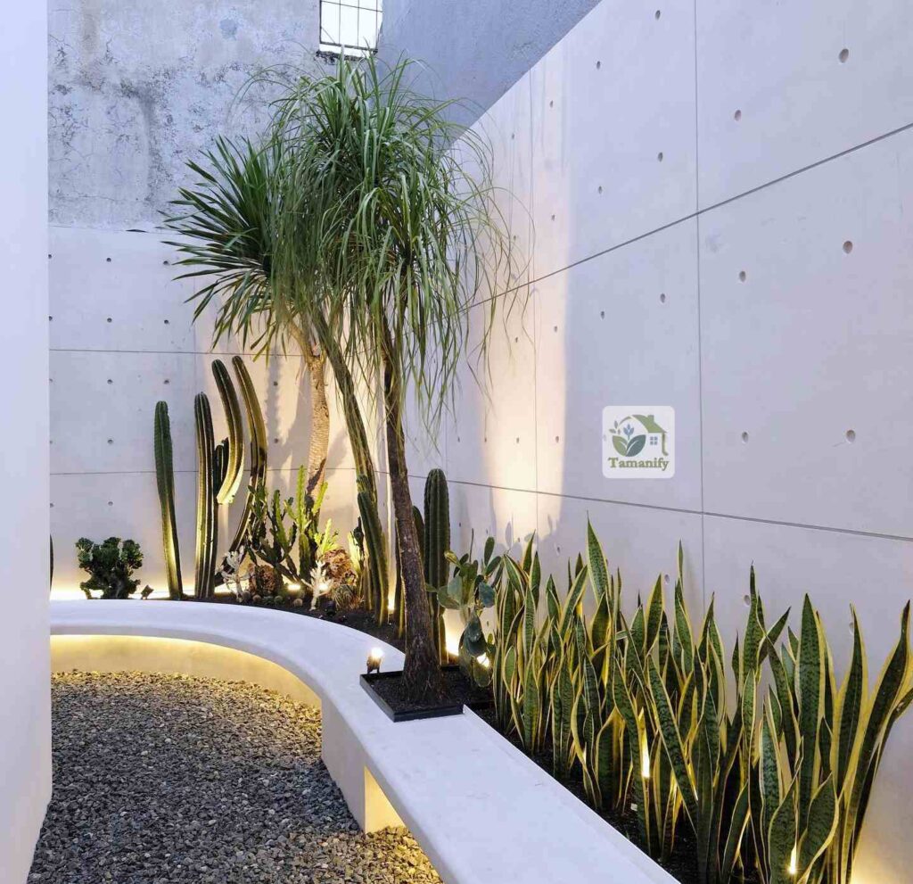 tamanify sering mengaplikasikan desain semacam ini untuk proyek klien yang ingin menghadirkan nuansa tropis tanpa membutuhkan perawatan kompleks.
