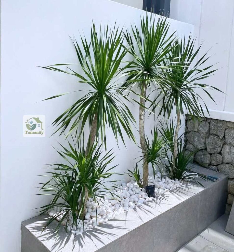 Gunakan elemen keras seperti batu alam, koral putih, atau kayu ulin sebagai pembatas agar warna tanaman lebih menonjol. Dalam komposisi desain, Pandan Bali sebaiknya menjadi βcenter of interestβ β fokus utama yang menarik perhatian di antara tanaman lain.