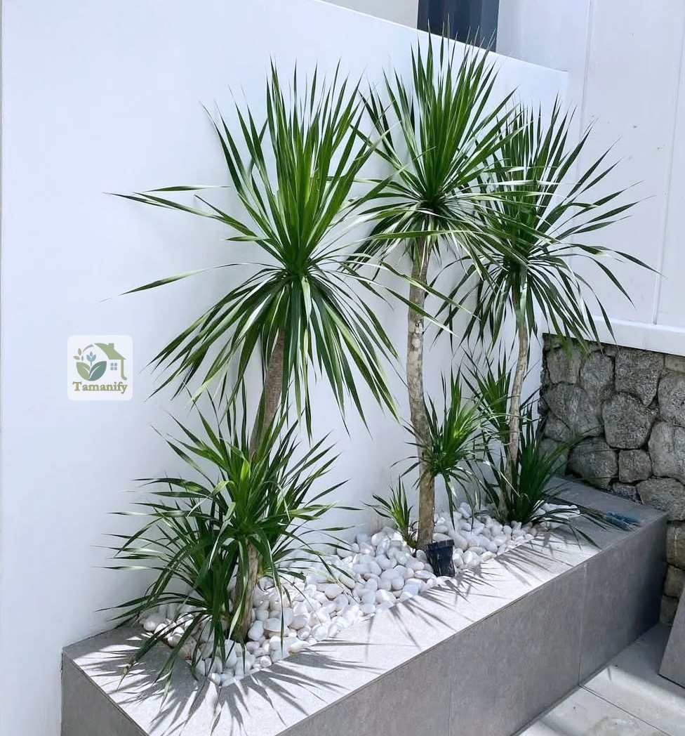 Jenis ini sangat efektif untuk membatasi area parkir, jalan setapak, atau zona duduk di taman. Bahkan, dalam jumlah besar, Pandan Bali bisa membentuk dinding hijau alami yang menambah privasi rumah tanpa menghalangi sirkulasi udara. Untuk properti komersial seperti hotel dan restoran outdoor di Depok, pola tanam berbaris menggunakan Pandan Bali sering digunakan karena tampilannya lebih alami daripada pagar beton.