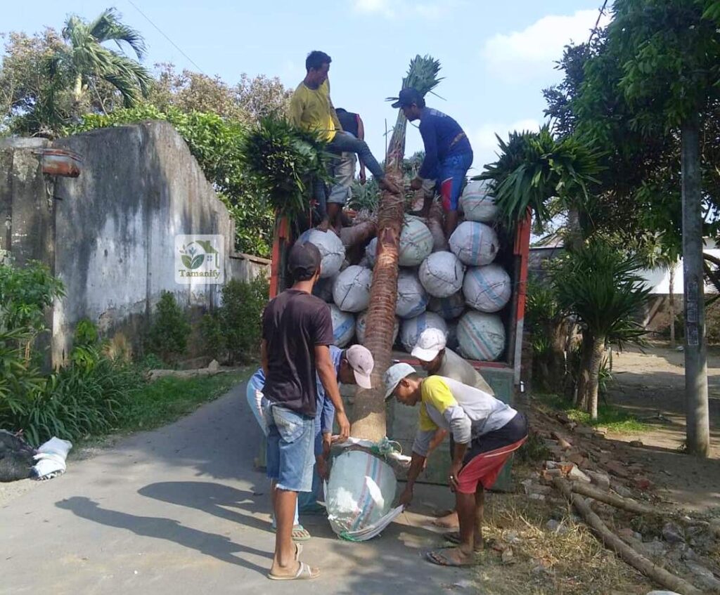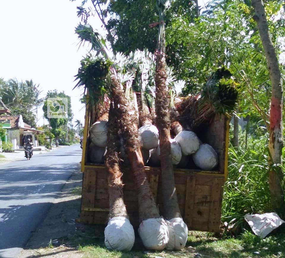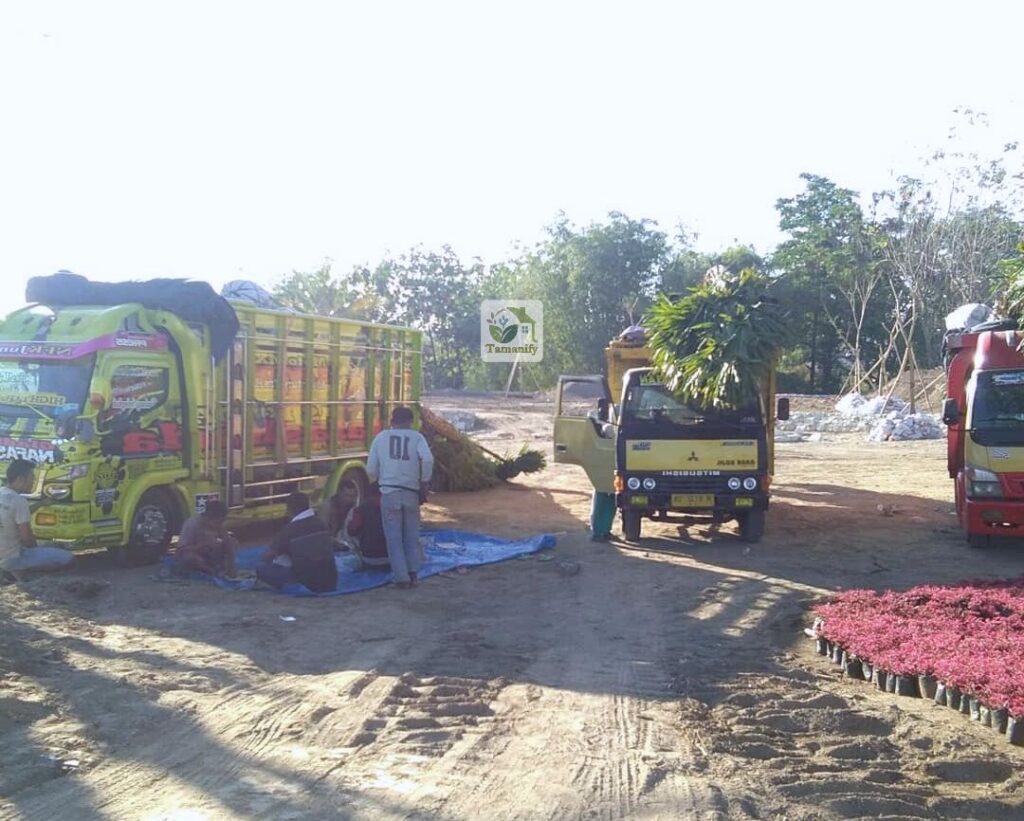 Pengiriman dilakukan dengan truk terbuka besar atau bak tertutup, tergantung ukuran dan jumlah tanaman.
