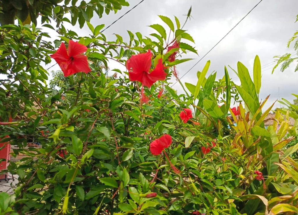 Hibiscus adalah semak berbunga besar dengan warna mencolok seperti merah, kuning, atau merah muda. Mekar sepanjang tahun di iklim tropis.
