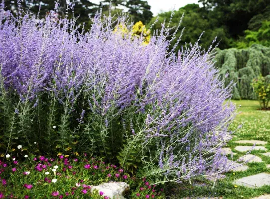 Lavender adalah semak aromatik dengan bunga ungu dan daun keperakan. Varietas seperti Lavandula angustifolia cocok untuk iklim kering.